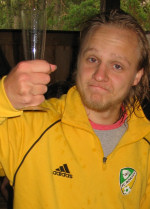 Drummer Sami makes a living playing with lots and lots of bands across Finland. When he has the time to spare he indulges aspiring players by teaching them the rough spun hemp ropes and the finest silk threads of the percussionists trade. A veteran of thousands (upon thousands upon thousands) of gigs, Sami too complemented his training at the... well, you know. He claims to play Irish music in his spare time, for his own amusement. A very affable chap, Sami styles himself a "drinker with a drumming problem". If you run across him in the world and wonder why he doesn't shake you by the hand it's because his hands are already full; a pint of lager in one and a Black Russian in the other. Buy him another round of both and you'll find in him the nicest guy who ever lived. Despite his not shaking hands. Try it once and see. I mean it. Get this man another drink. No, please do. Truly.